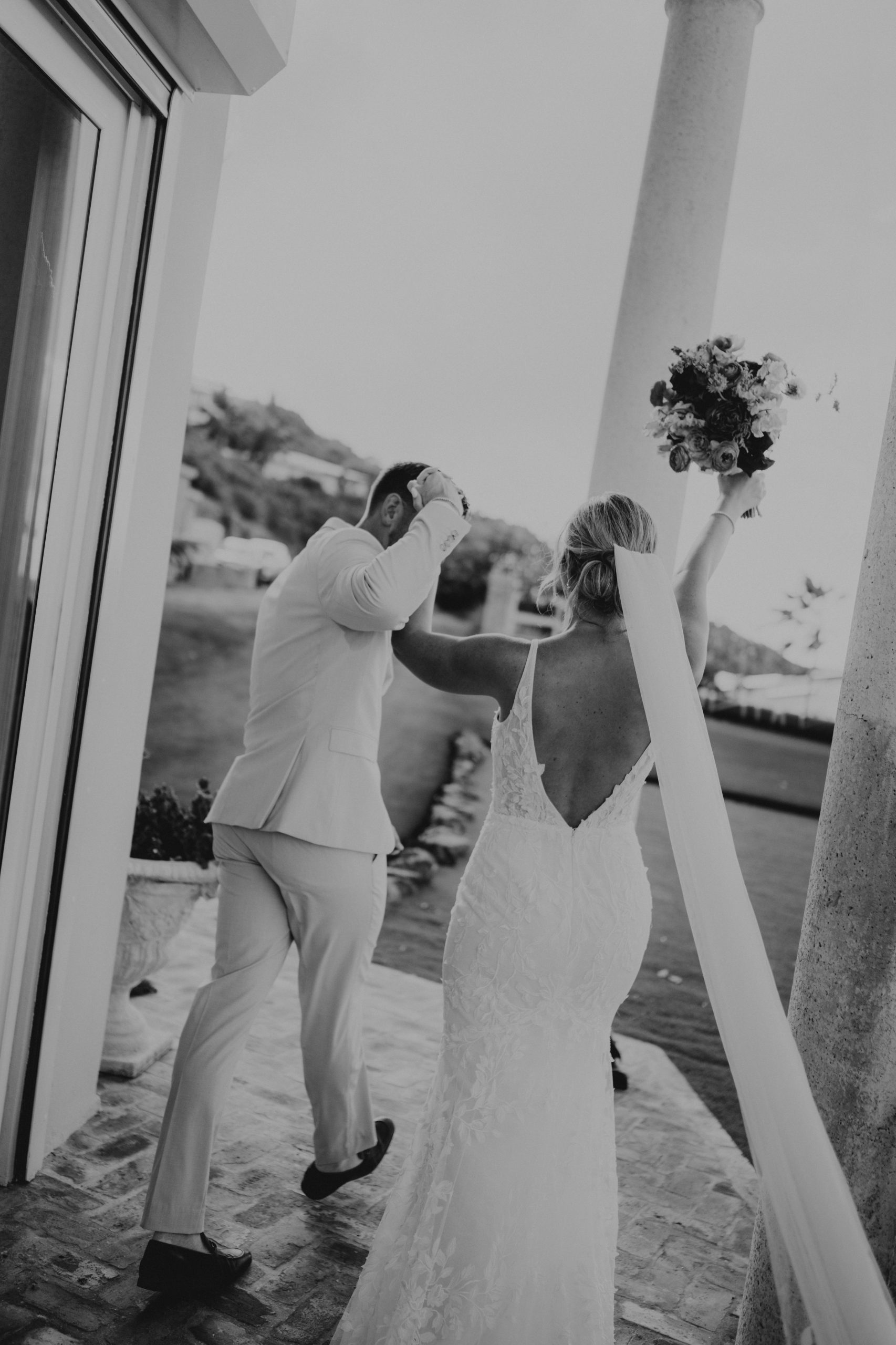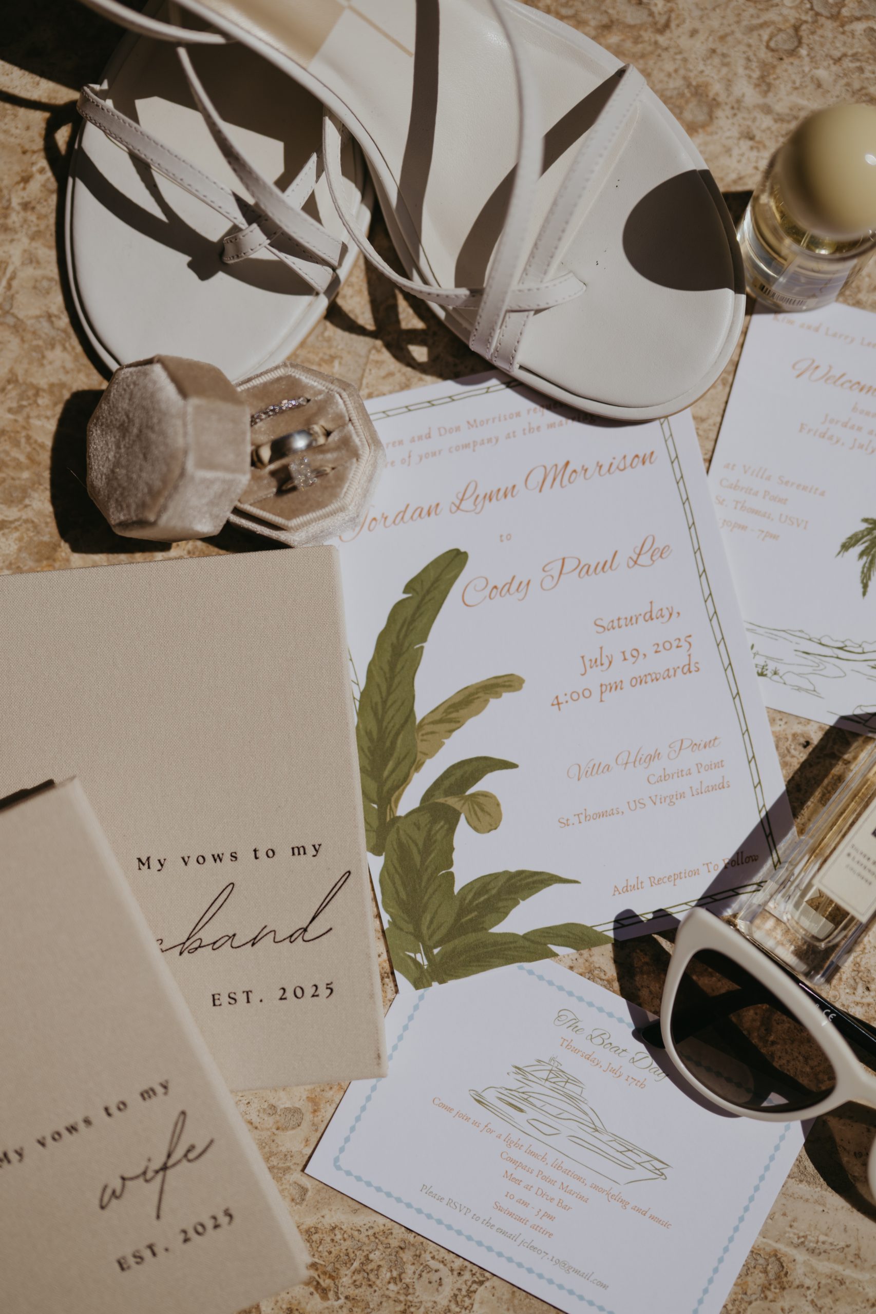 Jordon and Cody’s wedding in St. Thomas took place at a private villa overlooking the ocean, with the morning starting at Villa Serenita. The getting-ready space was calm but fun—good music, drinks flowing, and a mix of excitement and nerves in the air. Jordon kept things effortless and natural, while Cody and his crew brought a more laid-back energy. The setting did a lot of the work visually—clean light, bold tropical colors, and just enough contrast to keep things feeling a little moody.